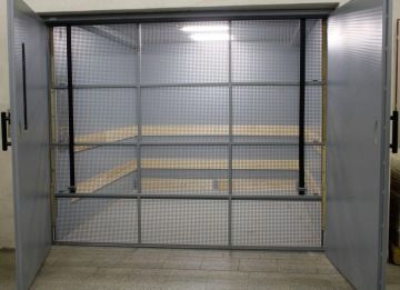 Křídla bariéry jdou otevřít, jen pokud stojí klec ve stanici (najížďka na kleci najetím na páčku dveřní uzávěry odsune kolík uzávěry). Spínač křídel bariéry je v zavřené poloze bariéry sepnut. Otevřením křídel se rozepne-přeruší se bezpečnostní obvod. Klec může odjet pouze při dobře zavřené bariéře. Po odjetí klece ze stanice sjede páčka dveřní uzávěry z najížďky a kolík uzávěry se vysune do otvoru ve vodítku „C“. Povrchová úprava: Křídla i zárubně se vyrábí s povrchovou úpravou komaxit (odstín RAL 7001 je v základní ceně, ostatní barvy za příplatek) nebo nerez.